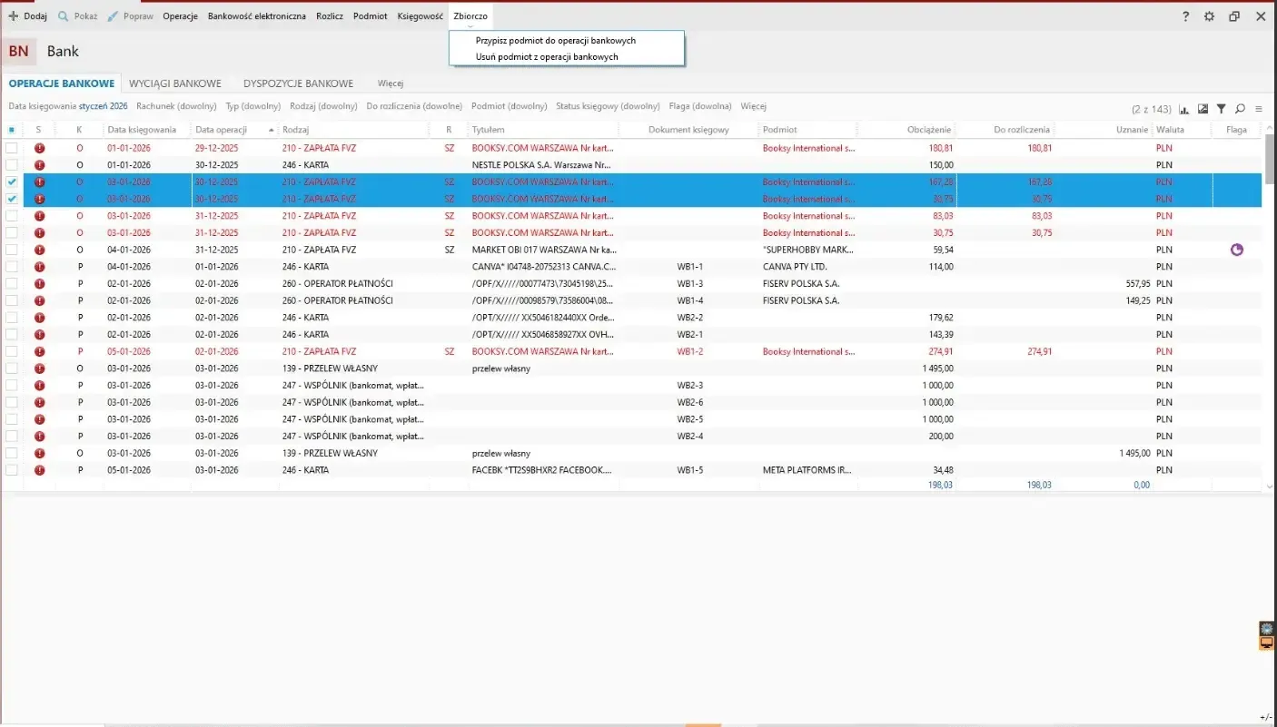 Masowe przypisywanie kontrahentów do Operacji Bankowych w InsERT nexo – koniec ręcznego klikania